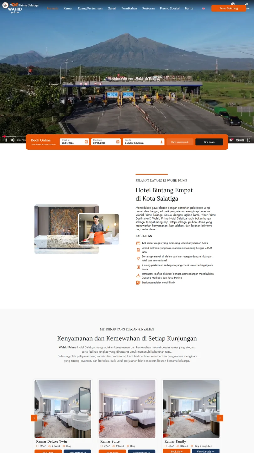 Kalau kamu pernah berkunjung ke Salatiga dan melihat hotel besar ini, website resminya kami yang develop, dirancang untuk menampilkan brand hotel secara profesional dan meyakinkan tamu sejak pertama kali membuka halaman.
